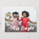 ALL IS BRIGHT, modern simple white script merry christmas photo card, personalise the holiday image and text.