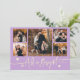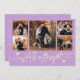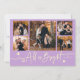 Minimal and modern holiday photo template card featuring 5 photos on the front with a hand written script text that says "all is bright" with stars. You can also add another picture and message on the back. The background is wisteria.