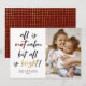 All is not calm but all is bright! This funny Christmas card is sure to get a smile out of family and friends this holiday season. This design features hand-lettered brush script calligraphy with "not" in a festive red color and "bright" in faux gold. Below, there is your custom greeting, family name, and year. To the right, there is your funny photo! Cards reverse to the same burgundy color with a hand-drawn gold lines pattern. Click on "Personalize" to change the text and upload your photo. Visit our store for more designs. Feel free to contact me with any questions!