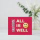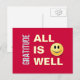Our All Is Well GRATITUDE Postcards are perfect for sending a quick handwritten note to friends and family who are no a gratitude journey. Design features bold text with iconic smiley face. Volume discounts available!