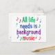 When life feels like a movie, it's important to have background music! Reads "All my life needs is background music."