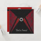 Elegant look of black leather and damask black on red design party invitations diamond trim. This template design works well as an invitation to a birthday party, cocktail party, holiday party, retirement party, New Year's Eve party, and any other special occasion. Customise with your choice of font style and font colour, and back side background colour.