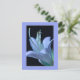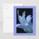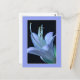 This floral postcard showcases an ornate, close-up photograph of a Hosta flower, highlighting the delicate elegance of its petals and central parts (stamen and pistil) in soft pastel shades of blue and purple against a black background, all framed in a sophisticated design. In some cultures, the flower symbolises friendship and devotion, making this postcard perfect for expressing friendship, sending thank-you notes, get well wishes, or birthday greetings.