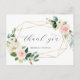 This thank you postcard features a geometric faux gold frame decorated with painted watercolor flowers in blush pink, white and green foliage and custom text on the back. You can use this card for a wedding, bridal shower, engagement, birthday, graduation, anniversary, or any special event. For more advanced customisation of this design, please click the BLUE DESIGN TOOL BUTTON above!