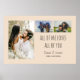 Create a heartfelt keepsake with this romantic photo collage poster featuring the beloved quote "All of Me Loves All of You." This customisable design allows you to showcase your favourite memories in a beautiful layout, complete with personalised names and location. Perfect for celebrating love, anniversaries, weddings, or Valentine's Day, this poster makes a meaningful gift for couples or a special addition to your own home. The clean, elegant design works beautifully in bedrooms, living rooms, or any space where you want to display your love story.