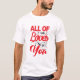 Celebrate love with this heartfelt romantic design featuring the phrase "All of Me Loves All of You" in elegant red and black typography. Embellished with cute hearts and decorative elements, this artwork is perfect for Valentine's Day gifts, anniversary presents, or expressing love any day of the year. Ideal for T-shirts, hoodies, mugs, greeting cards, and home decor, this design beautifully captures the essence of deep affection and devotion. Make your loved one feel special with this charming and meaningful piece!