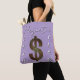 Magnetic Cash Flow Tote Bag in soft lilac, designed to attract abundance. Features a striking dollar sign and the affirmation "Magnetic Cash Flow." Fully customizable: Change the text, font, or color for a personal touch! Perfect for everyday use.