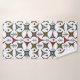 This towel set has a turquoise washcloth, a purple hand towel, and a bath towel with a mid-century modern design of four-point and three-point stars in retro colours.
