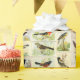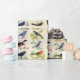 All sorts of birds in all sorts of colours on wrapping paper - great for birthdays. The birds are blue, black, yellow, red, and white on coloured backgrounds merged into a patchwork quilt image.