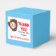 Fun boy's baseball theme thank you favour boxes: 1st Birthday. Brown glove with a red and white baseball (add your child's age inside the ball). Athletic sports typography. Ideal for Boy's First Birthday.
