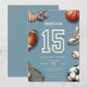Get ready to celebrate with our all star sports 15th birthday invitation, perfect for your little All-Star! Whether it's for a game sport party or a special teens birthday invite, this sports-themed printable is sure to excite any boy who loves sports. Let's have a ball and make this all sports birthday celebration one to remember! Customize text, color, fonts like you want, just click <<personalize this design>>.
