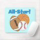 Our All Star Sports mousepad features blue text that reads "All-Star!", a football, baseball, and basketball on a light blue background!