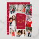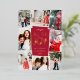 Fun and festive holiday photo card in a modern jewel tone colorway features eight photos arranged in a collage layout. "Wishing you all the joy" appears in the centre in gold foil lettering on a cranberry red background accented with stars. Personalise with your personal greeting, your family name, and the year.