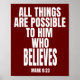 all things are possible to him who believes, mark 9:23. bible verse. for christian and believers, motivational and inspirational. it can given as a birthday gift and christmas gift for dad gift, mom gifts, brother present, daughter presents, uncle gift, brother gifts, sister gifts, grandpa present and grandma gift. gathering gift. get it now. thank you.