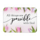 Typography design with caption in white letters, "All Things are Possible With God .” Design is centred inside colourful tulip photography border. Bible verse is from Matthew 19:26.