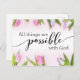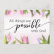 Typography design with caption in white letters, "All Things are Possible With God .” Design is centred inside colourful tulip photography border. Bible verse is from Matthew 19:26.