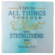 The wonderful words from Philippians 4:13 is in colours of black, teal and gold on this inspirational and pretty tile. The text is placed on a lighter teal bokeh background. Thanks to ReadytobeCut for the text used in this design.