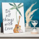 "Do all things with love" Inspirational quote with guitar and tropical watercolor elements