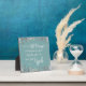 Plaque with distressed white typography on textured aqua background surrounded by watercolor flowers, with well known verse from Romans 8:28, “… All things work together for good for those who love God…”
