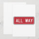 Set the tone for your event with these unique “All Way” street sign invitations. Featuring a bold red and white traffic sign design, these invitations are perfect for transportation-themed parties, car enthusiasts, road trip celebrations, or urban-style gatherings. Printed on high-quality paper with crisp details, they provide a fun and eye-catching way to invite guests to your special occasion. Personalise with your event details to create a one-of-a-kind announcement that stands out. Ideal for birthdays, graduations, or any celebration with a creative theme. Available in multiple sizes and paper options to match your style.