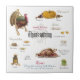 A vintage Thanksgiving postcard from 1910, with all the fixens, including chicken soup, roast turkey and cranberry sauce, potatoes, peas, carrots, raisins, pumpkins, nuts, well water, cider and coffee. The meal begins with the toast, 'May the turkey look thinner At the end of this dinner.'