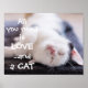 A close-up photo of a cute sleeping kitten and a saying "all you need is love ... and a cat"