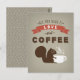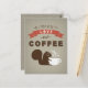 Squirrel enjoys a steaming hot mug of coffee. "All you need is love and coffee." A cool coffee lover's postcard that is customisable for business or personal mailings. Writing side of this postcard features a coffee beans pattern. Visit Jenn's Doodle World for even more original products featuring this cute squirrel.