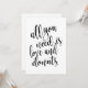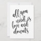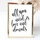 An elegant cutting edge wedding sign, features the text "All you need is love and doughnuts" in a extroverted script font, the brush texture adds a spontaneous and playful feeling. The background colour can personalised according to your needs and preferences, please contact me if you have any special request.