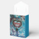 Tent-style with white ribbon favour box with "All You Need Is Love" printed across an image of a blue, purple and white tie-dye with a deep purple heart. See the entire Psychedelic 60s Favour Box collection in the PARTY FAVORS section.