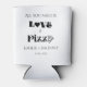 All you need is love and pizza. can cooler for a wedding shower or rehearsal dinner party The modern romantic design incorporates traditional black letters.