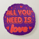 Brighten up your living space with this bold and vibrant round pillow featuring the uplifting phrase “All You Need is Love.” With its striking purple background, red accents, and playful heart designs, this pillow is perfect for adding a pop of color and a heartfelt touch to any room. Soft, plush, and stylish, it’s a perfect gift for special occasions or to treat yourself.