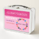 This is a standard metal lunchbox that appears to work just fine. We designed this box ourselves with an uploaded photo and custom text on the front and back. It looks absolutely beautiful except the front of the lunchbox is not centered like it shows in the photo. The print borders don't align with the inset flat part of the box where the preview photo online showed it perfectly centered in there. The back looks nice and centered though.