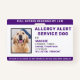 Allergy Alert Service Dog Personalised Photo ID ID Badge
