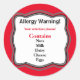 Allergy warning label stickers with cartoon character drawing. Food allergy ingredient alert.