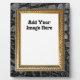 Alligator faux leather is black, shiny, and has a textured skin look background. Gold and black, ornate frame added. Upload your own photo to make this a unique gift!