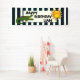 Birthday banner with an alligator and yellow sun on a blue and white striped nautical background. Personalise your text using the spaces provided. If you would like more creative control, use the "Customise It" button to change font, font size and colour. Make it your own.