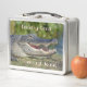 Florida’s got more alligators than you can count—over a million, in fact! And the American alligator is proudly repping as the state’s official reptile. With this fun metal lunchbox featuring a close-up photograph of a toothy grinning alligator from the Everglades, you’ll be the talk of the swamp and lunch with a gator. The gator's smile is just sharp enough to give you a friendly warning, "Looking Good enough to eat"! Add your own custom text and a name for a personal touch. Wildlife photography by JLW_PHOTOGRAPHY. How's this?