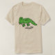 A cute green stick figure alligator on T-shirts and other apparel that can be customised with text or a name.