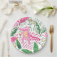 Pink alligators on white background with bottles of wine and glasses on paper plates. Alligator plates can add a preppy flare to your party. The alligator pattern can be found on more items in my store, PageCreativeDesigns.