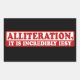 A funny kickstart illustration which has the words alliteration it is incredibly easy. The joke is that some words are spelled incorrectly in order to make the alliteration work period a funny design for an English teacher or anyone who loves creative writing.