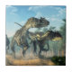 Three allosauruses kick up dust as they hunt along a rocky track created by the passage of large dinosaurs. Deep green plants line the sides of the trail" "while a conifer forest dominates the background. Overhead clouds drift through the blue prehistoric skies. The allosaurus was a theropod dinosaur from the Jurrassic period. Some paleontologists theorise that Allosaurs were pack hunters" "so I though it might be fun to depict a trio of the creatures on the hunt for this latest addition to my paleoart series.