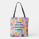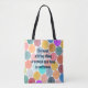 This tote bag has a design of concentric circles with a quote by Beyonce celebrating women.