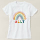 Show your support by wearing this cute Ally t-shirt with a rainbow on it.