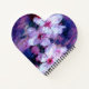 Pretty white Almond Blossoms in stark contrast against a purple hazy background.