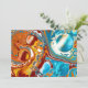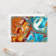 Aqua blue burgundy and brown fluid art digital pour painting artwork card.