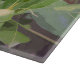 The original pattern on this 15”x11” Cutting Board was made from an original photograph by HomeWare of a branch of an almond tree. The tree is in sunlight and shadow, and the photo shows the almond hulls up close, as they emerge from the centre of a leaf cluster. The photo was then repeated to form the overall pattern. The natural colours of the nuts and leaves make a beautiful, green design.