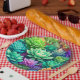 AI art depicting sage green, purple, orange and blue succulent plants ai art.
