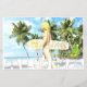 Aloha ! Dream Landscape with a girl inviting us to surfing and have fun, sport, in full freedom.