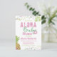 Aloha Baby Pink & Green Tropical Flower & Pineapples with Personalised Custom Text. With Hibiscus Floral, Fern Jungle Green Brush Script Font, and Modern Bold Sketched Mauve Pink Letters! Baby Shower Theme - invitation postcards!