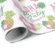 Aloha Baby Pink & Green Tropical Flower & Pineapples with Personalised Custom Text. With Hibiscus Floral, Fern Jungle Green Brush Script Font, and Modern Bold Sketched Mauve Pink Letters! Baby Shower Theme - gift wrap paper!